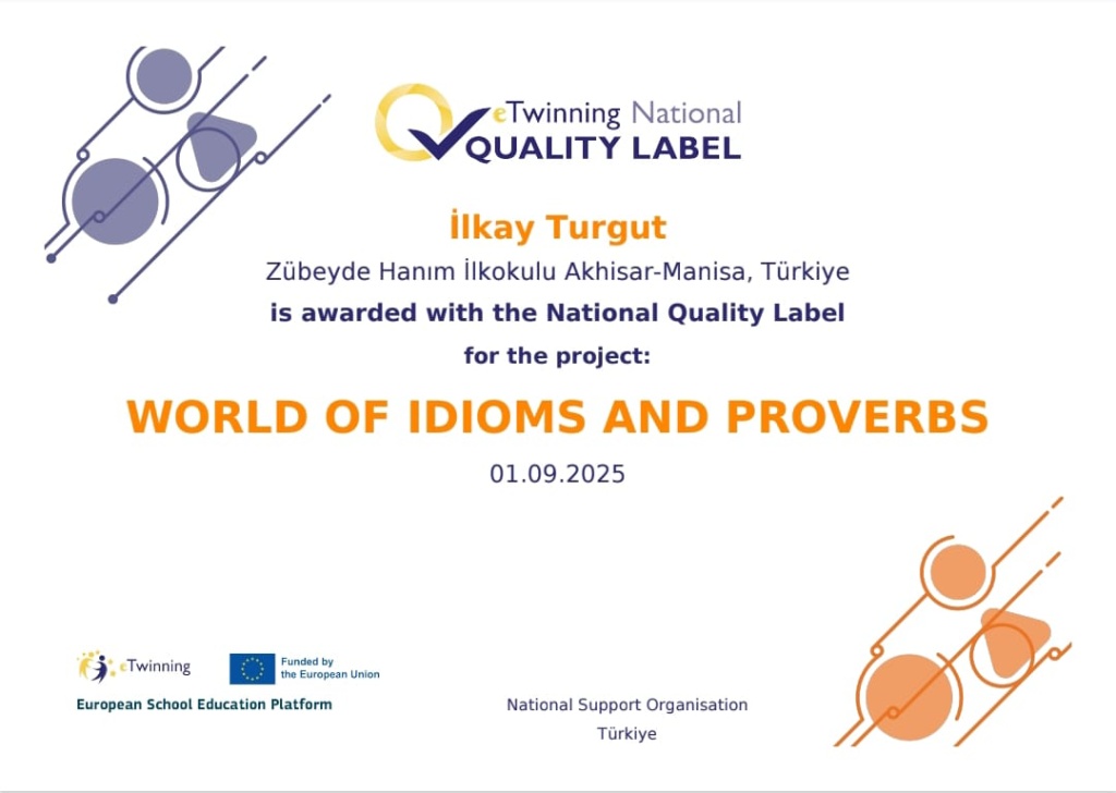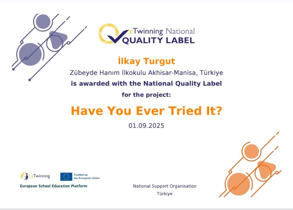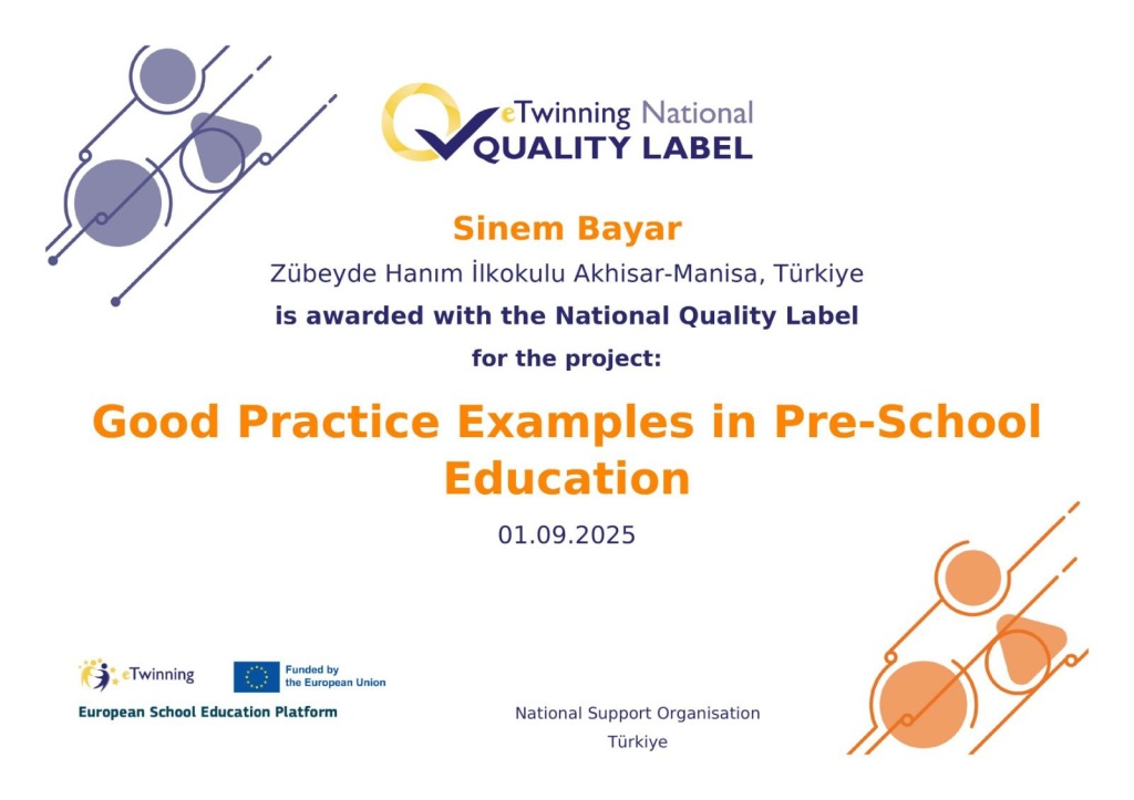 Zübeyde Hanım İlkokulu öğretmenlerimizden İlkay Turgut ve Sinem Bayar tarafından yürütülen e-Twinning projeleri, Ulusal Kalite Etiketi almaya hak kazanmıştır.