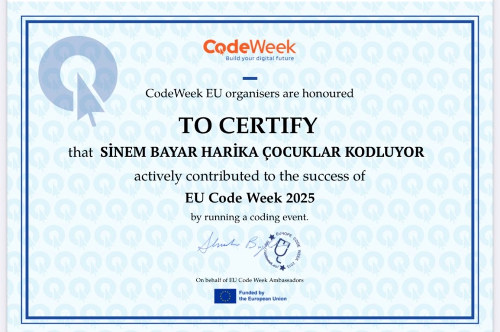 Avrupa genelinde eş zamanlı olarak düzenlenen CodeWeek (Avrupa Kodlama Haftası), teknoloji ve kodlama bilincini yaygınlaştırmayı amaçlayan uluslararası bir etkinliktir. Okullarda yaratıcı düşünme, problem çözme ve dijital farkındalık becerilerini desteklemek için gerçekleştirilen bu özel haftada, öğrenciler kodlama, üretim ve teknoloji temelli projelerle geleceğe hazırlanmaktadır.
