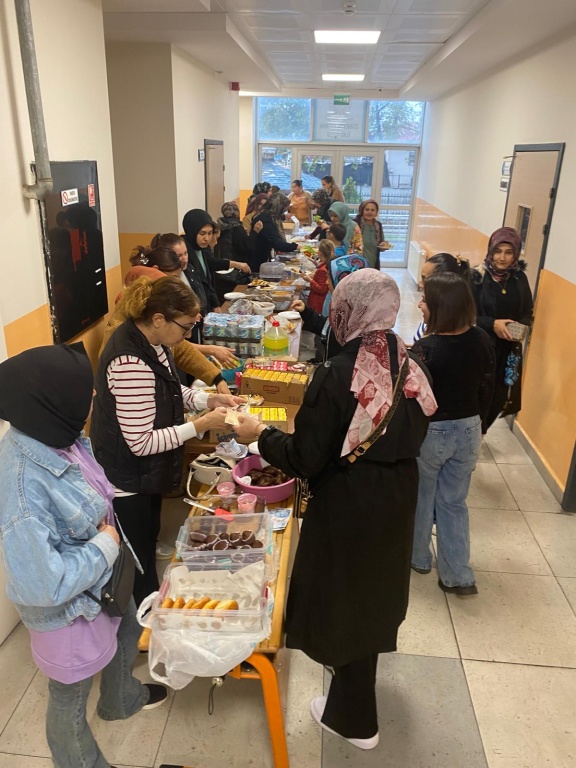 23 Ekim 2025 Perşembe günü okulumuzda yapılan etkinlikte veliler, evlerinde hazırladıkları çeşitli yiyecek ve ürünleri satışa sundu. Öğrenciler ve öğretmenler de bu anlamlı etkinlikte görev alarak iyiliği çoğaltmak için el ele verdi.Kermesten elde edilen tüm gelir, Gazze’de zorlu şartlar altında yaşam mücadelesi veren kardeşlerimize destek olmak amacıyla toplandı.